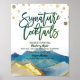O Bar está Aberto / Menu de Coquetel Assinatura de Bebida Modelo de Letreiro de Decoração de Casamento - Paisagens de Montanhas em Aquarela Azul Verde e Folha de Ouro Falso.
