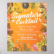 Signature Cocktail Drink Menu Wedding Decor Poster Modelo - Folhas Elegantes de Maple de Outono, Bombas e Flores de Cores Solares em Fundo de Gradiente Laranja. Um Design Perfeito Para O Seu Grande Dia! Todo Estilo De Texto, Cores, Tamanhos Podem Ser Modificados Para Ajustado Das Suas Necessidades.