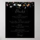 Poster Menu de Bebidas de Casamento Preto Floral com Mult