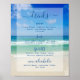 Esta bela poster de cardápio de bebidas de praia mostra uma linda foto das ondas do oceano para um evento de destino. Fotografia bonito na praia, combinada com elegante tipografia branca e azul, cria um cardápio de bar moderno para sua festa na ilha tropical ou luau costeiro.