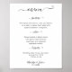 Informe seus convidados do menu do dia com este design simples, mas elegante. Este menu de casamento está em um fundo branco com texto preto. Seus hóspedes adorarão a combinação de uma fonte de script de casamento e itens de menu fáceis de ler. Você tem espaço amplo para três cursos. No final, você adicionará seus nomes e data. Se você precisar de assistência para personalizar isso, entre em contato com o designer que pode ajudá-lo.