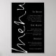 Menu Simples de Casamento Preto na moda Script. Este design preto e branco moderno tem Menu em um script de conjunto elegante rodando no lado esquerdo e o resto do texto está alinhado à direita que você pode personalizar facilmente. A cor do texto e do plano de fundo pode ser alterada para qualquer uma de suas opções por meio da opção editar mais.