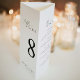 Este menu tem uma dupla finalidade, servindo como um número de tabela e um visor de menu. Seu design versátil permite que você realce facilmente o número da tabela e, ao mesmo tempo, forneça amplo espaço para os menus janto e bebida. Uma vez impressa, dobre a página em três seções e prenda a forma do triângulo com uma linha de cola ou fita de dois lados ao longo da aba de cola. O trabalho de arte inclui linhas de dobrar que você pode excluir antes de comprar. Os cabeçalhos de script são imagens que não podem ser editadas. Todo o outro texto é totalmente editável. Para personalização mais avançada deste design, basta selecionar o botão "Personalizar" acima. Este menu apresenta um design moderno minimalista com uma letra escrita manuscrita num fundo branco para uma aparência simples e limpa. Adicione um obrigado aos seus convidados no verso do menu ou deixe-o vazio. O cabeçalho do script é uma imagem que não pode ser editada. Todo o outro texto é totalmente editável. Para personalização mais avançada deste design, basta selecionar o botão "Personalizar" acima.