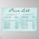 Poster Menu de Preços de Serviço de Parede Azul-Turquesa