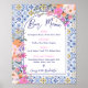 Traga um na moda para o seu chá de panela com este símbolo de menu do Bar Boho Floral & Blue Azulejo. Apresentando delicadas flores pintadas à mão e uma borda azul e azulejo amarela inspirada no Mediterrâneo, esta placa apresenta lindamente vinho, bebidas espirituosas, cerveja e opções não-alcoólicas. É a adição perfeita à sua estação de bebidas e faz uma declaração de chic que os hóspedes adorarão. Ideal para chás de panela, festas de noivado ou celebrações de solteira.