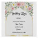 Cartão de noiva floral de cor d'água de luxo. Este design com arco apresenta rosas brancas e cor-de-rosa macio, folhas de eucalipto e sotaque de ouro mágico, perfeito para um romântico casamento com o jardim. O cartão destaca um menu exclusivo com "Couscous marroquino" e "Orange Blossom Cake", fazer ideal para casamentos culturais ou de destino. Todo texto é totalmente personalizável.