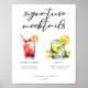 Este poster de mocktails de assinatura chic apresenta tipografia negra personalizada acima de 2 bebidas não alcoólicas e seus ingredientes para seu bar de casamento. Um lindo Shirley Temple e um desenho virgem de Mojito adicionam um talento legal ao seu menu de bar. Preencha com os nomes dos casais e a data para sua recepção.
