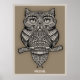 Um ornamentado, Dia da caneta Morta e desenho de tinta de um híbrido de coruja-gato. Sábio, a sós e a entrança!