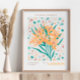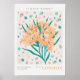 Um design refinado e dinâmico que combina ilustrações botânicas inglesas vintage com uma estética minimalista moderna. Esta ilustração apresenta um impressionante buquê de lírios em tons suaves de damasco e creme, acentuados por uma dança rítmica de folhas em tons de azul-teal e terracota contra um fundo neutro e quente.