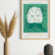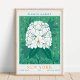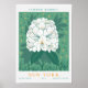 Um design sofisticado e exuberante que combina estudos botânicos vintage com uma estética moderna de galeria. Esta ilustração apresenta um grande rododendro branco em flor sobre um fundo verde esmeralda profundo, acentuado com delicados estames amarelos e detalhes de pétalas flutuantes.