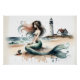 Pôster Mermaid Lighthouse Coastal Watercolor Scene