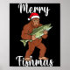 Poster Merry Fishmas Bigfoot Fishing Funny Sasquatch Sant