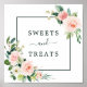 Este doce de casamento e trata a placa de mesa de sobremesa mostra as flores pintadas de aquarela em uma folhagem cor-de-rosa-pincel, branca e verde com uma estrutura quadrada. Perfeito para casamentos, aniversários, chás de panela, chás de fraldas, graduações e outros eventos. Para personalização mais avançada deste design, clique no link "Personalizar mais". Itens correspondentes também estão disponíveis.