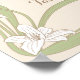 Um poster de estilo art nouveau que indica a localização da sua mesa de presente. Apresenta lírios brancos desenhados à mão com folhas verdes, formando uma estrutura orgânica fluindo ao redor do seu texto personalizado, em um fundo bege.