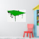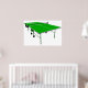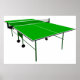 Uma mesa de ping pong verde e pronta para ser tocada. Esta design parece realmente eficaz nesta Poster