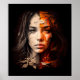 Retrato surreal pintura do rosto de uma mulher sobre um fundo preto com diferentes metades esquerda e direita do rosto. Este é outro design de 100% original de Hamster de Combate.