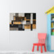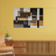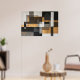 Geometric abstract art combining rectangles and subtle shapes in black, white, gray, and metallic gold. The structured composition evokes modern architecture with industrial textures. Perfect for contemporary decor seeking sophistication, visual balance, and a touch of discreet luxury.