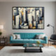 Sinta o pulso da cidade nesta obra de arte dinâmica. Formas geométricas e contrastes marcantes recriam a energia vertical da vida urbana. Perfeita para espaços contemporâneos, esta peça é uma homenagem à arquitetura moderna e ao ritmo implacável da metrópole.