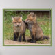 Dois filhotes de raposa vermelha compartilham um momento logo fora de sua toca.