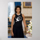 A Primeira Dama da Paz. Michelle Obama em vestido preto sem mangas adormecido com pomba branca e símbolo de paz.