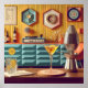 Poster Mid Century Atomic Retro Futuristic Party Room