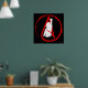 Poster de um homem ou mulher branco com o punho no ar com a letra A vermelha do escarlate para o ateísmo em fundo preto.