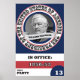 Celebre o legado de Millard Fillmore com este poster histórico. Inclui o retrato presidencial, vermelho patriótico, branco e azul, bem como as datas da presidência. Como bônus vem a festa a que a prez pertencia e seu número na linha.