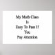Pôster Minha Classe De Matemática É Fácil De Passar Se Vo