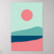 Este impressão moderno sol e paisagem marinha é minimalista, na moda e fofo. As cores azul e cor-de-rosa podem ser personalizadas para se adequarem ao seu decoro interior.