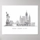 ”Minimalist New York City Skyline Line Art | NYC Landmark Illustration | Statue of Liberty & Brooklyn Bridge Outline“
