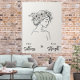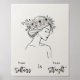 Minimalist Woman Line Art Poster – Black Ink Floral Crown Illustration, Scandinavian Neutral Wall Decor, Modern Minimal Print with Customizable Text