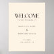 Minimalistic Ivory Bold Typography Wedding Welcome Poster Print. A modern, minimalistic and elegant, beige/ivory and black wedding welcome poster print, designed with "welcome" in large, bold typography. Personalize with bride and groom first and last names, your wedding date, and location.