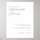 Procurando uma maneira elegante de encorajar seus convidados a se desplugar durante sua cerimônia de casamento? Veja este sinal de cerimônia desconectado da caligrafia negra minimalista. Com a sua simples e limpa design, esta placa apresenta uma bela fonte caligráfica que lê "cerimônia desconectada" e "bem-vinda à nossa cerimônia desconectada". É a maneira perfeita de garantir que seus convidados estejam presentes no momento e não distraiam com seus telefones ou câmeras. Além disso, é fácil personalizar - basta clicar em "personalizar" e inserir seus detalhes. Não se esqueça de verificar o resto da coleção para ver todos os itens correspondentes disponíveis nesta bela design. Esta placa é barato e amigável, fazer-a como excelente adicional a qualquer casamento.