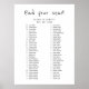 Gráfico de Assentos de Casamento de na moda. Texto manuscrito preto e branco simples.