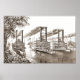 A competição de barco a vapor do Rio Mississippi, "The Race for the Buckhorns". A defensora do ribeirinho campeão, "Rainha do Ocidente", veste orgulhosamente os troféus entre as suas chaminés. De um litógrafo original do século 19 (1866) de Fanny Palmer. Todos os direitos reservados © 2014 padre art