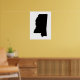 A forma do estado do Mississippi em preto e branco. Altere a cor de fundo ou adicione uma mensagem de texto de souvenir personalizada.