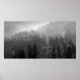 Poster Misty Pine Forest Black and White Landscape