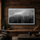 Transform your space with this striking black and white poster featuring a misty pine forest layered across a mountainous landscape. Soft fog drifts through the trees, creating depth, contrast, and a calm, atmospheric mood that draws the eye. The monochrome tones highlight the natural textures of the woodland, making this piece a timeless addition to both modern and classic interiors.