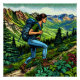 Pôster Moça de mochila caminhando na trilha