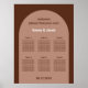 Apresentando um arco marrom-chocolate escuro em volta do lindo marrom-mocha, este poster de assentos moderno de 6 mesas é fácil de personalizar online antes de encomendar o poster de assentos do Zazzle. As cores rústicas o fazem excelente para um casamento no outono, um casamento na floresta ou um evento semelhante.