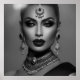 Retrato clássico de moda monocromática preto e branco Jóias deslumbrantes e glamourosas para mulheres. Mulher exótica deslumbrante Jóias na cabeça da mulher glamourosa pedras preciosas. Um deslumbrante ouro Mulheres glamourosas cartazes Mulher bonita com jóias no cabelo gargantilha colar glamour retrato