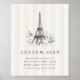 Design com seu próprio cartaz de festa inspirado em Paris, com este modelo de Sangue de Paris personalizável da Redwood & Vine Design Co., com uma encantadora Torre Eiffel, detalhes florais de blush e verde, e listras de marfim suave, este cartaz versátil funciona lindamente para chás de panela, festas de noivado, casamentos ou qualquer comemoração de temas franceses. Disponível em opções impressas ou imprimíveis para atender às suas necessidades de eventos.
