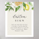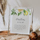 Personalize sua sinalização de chá de panela com este modelo de sinal personalizado 8x10, com tema limão editável, da Redwood & Vine Design Co., com limões de aquarela e florais com script elegante e tipografia serif, este sinal digital coordena-se com a suíte de sução principal do cheio. Perfeito para mesas de sobremesa, sinais de bar, mensagens de boas-vindas ou qualquer detalhe de evento especial. Disponível para impressão e envio profissionais, ou como download digital para impressão local ou em casa.
