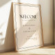 Modern Beige Bold Typography Wedding Welcome Poster Print. A minimalistic and modern, beige/cream and black wedding welcome poster print, designed with "welcome" in large, bold typography. Personalize with bride and groom first and last names, your wedding date, and location.