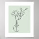 This minimalist botanical illustration features a delicate flower branch of Magnolia flowers arranged in a simple vase, drawn with elegant black line art on a soft sage green background. The clean lines and balanced composition create a calm, modern, and timeless aesthetic.