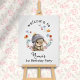 This kid's birthday party welcome poster features a sweet watercolor bunny surrounded by soft florals and wildflower accents in a modern, colorful style. Perfect for spring or summer first birthday parties, woodland or forest themes, and garden celebrations. Easily personalize with the cute baby's name and event details. A charming way to greet guests and set the tone for your celebration.