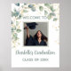 Modern eucalyptus greenery graduation welcome semi-gloss poster with refined gold accents, designed to greet guests stylishly and elegantly. Perfect for setting the tone at a high school or college graduation party and coordinating seamlessly with a greenery-themed graduation decor collection.