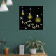 decorate your home or event space with this stunning happy new year poster featuring a modern light bulb theme. the high contrast design showcases three hanging incandescent bulbs glowing with a warm yellow light against a deep black background. sparkling white starbursts and elegant typography create a sophisticated atmosphere for any holiday party or office celebration. this artistic print serves as an inspirational focal point, representing bright ideas and a brilliant future for the coming year. it is a perfect choice for those who appreciate contemporary holiday decor and minimalist graphic art.
