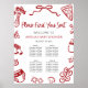 Poster Modern Red Hand Drawn Italian Pizza Seating Chart