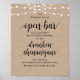 Our Wedding has an Open Bar, it is also being heavily photographed. So all Drunken Shenanigans will be well Document and Thoroughly mocked for years to come poster, in modern rustic design, brown kraft background, string lights theme.